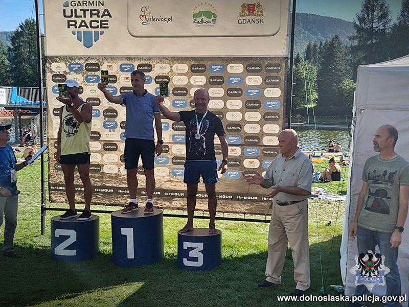 Aspirant sztabowy Grzegorz Karwacki z każdym kolejnym startem w zawodach sportowych udowadnia, że może walczyć o miejsca na podium z najlepszymi. Tym razem wałbrzyski policjant zajął trzecie miejsce w swojej kategorii wiekowej podczas imprezy „Garmin Ultra Race”, która w miniony weekend odbyła się w Radkowie. Funkcjonariusz dystans 24,5 kilometra po górskim terenie pokonał w czasie 2 godzin 50 minut i 38 sekund.