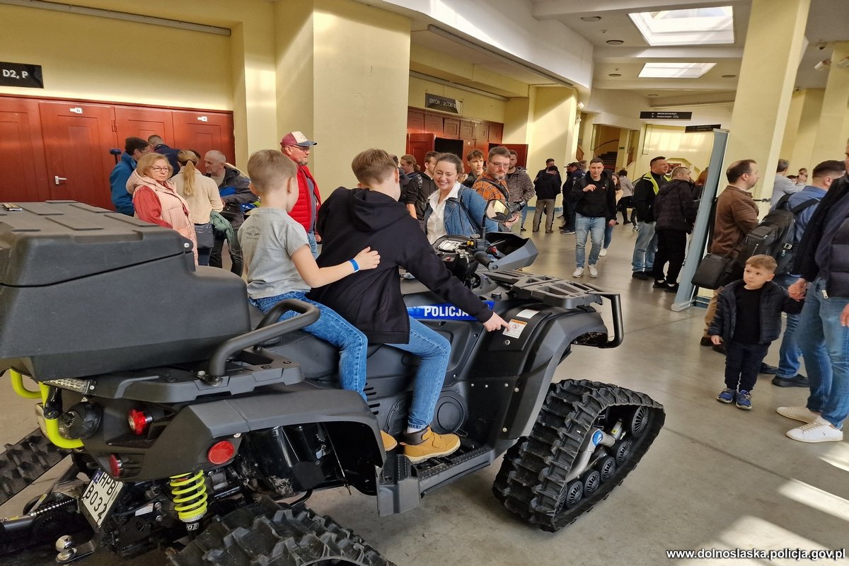 Stoisko KWP we Wrocławiu cieszyło się dużym zainteresowaniem. Odwiedzający mogli zobaczyć sprzęt wykorzystywany na co dzień przez funkcjonariuszy ruchu drogowego oraz m.in. quady, z których korzystają policyjnych wodniaków ze stolicy Dolnego Śląska. Każdy, kto pojawił się przy naszym stoisku, mógł wsiąść na policyjny motocykl, quad czy zasiąść za kierownicą oznakowanego radiowozu. Osoby zainteresowane mogły również uzyskać szereg informacji na temat służby w Policji i procesu rekrutacji do tej największej formacji mundurowej w naszym kraju.