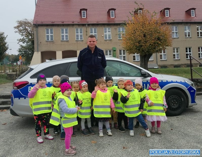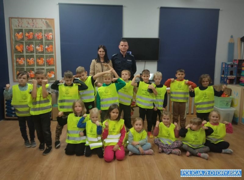 Słaba widoczność spowodowana niekorzystnymi warunkami atmosferycznymi i wcześnie zapadającym zmrokiem, powoduje że piesi na drodze są mało widoczni dla kierujących. Dlatego też, korzystanie z drogi, gdy panują na niej trudne warunki, wymaga zwiększenia uwagi zarówno przez pieszych jak i zmotoryzowanych uczestników ruchu drogowego. Dzięki wspólnej inicjatywie dzielnicowego Komendy Powiatowej Policji w Złotoryi oraz przedstawiciela Gminnej Komisji Rozwiązywania Problemów Alkoholowych zakupione zostały kamizelki odblaskowe, które przekazano trzem przedszkolom na terenie gminy Złotoryja. Teraz dzieci będą mogły z nich korzystać podczas spacerów i wycieczek, zwiększając swoje bezpieczeństwo poza przedszkolem. Brawo za taką inicjatywę!