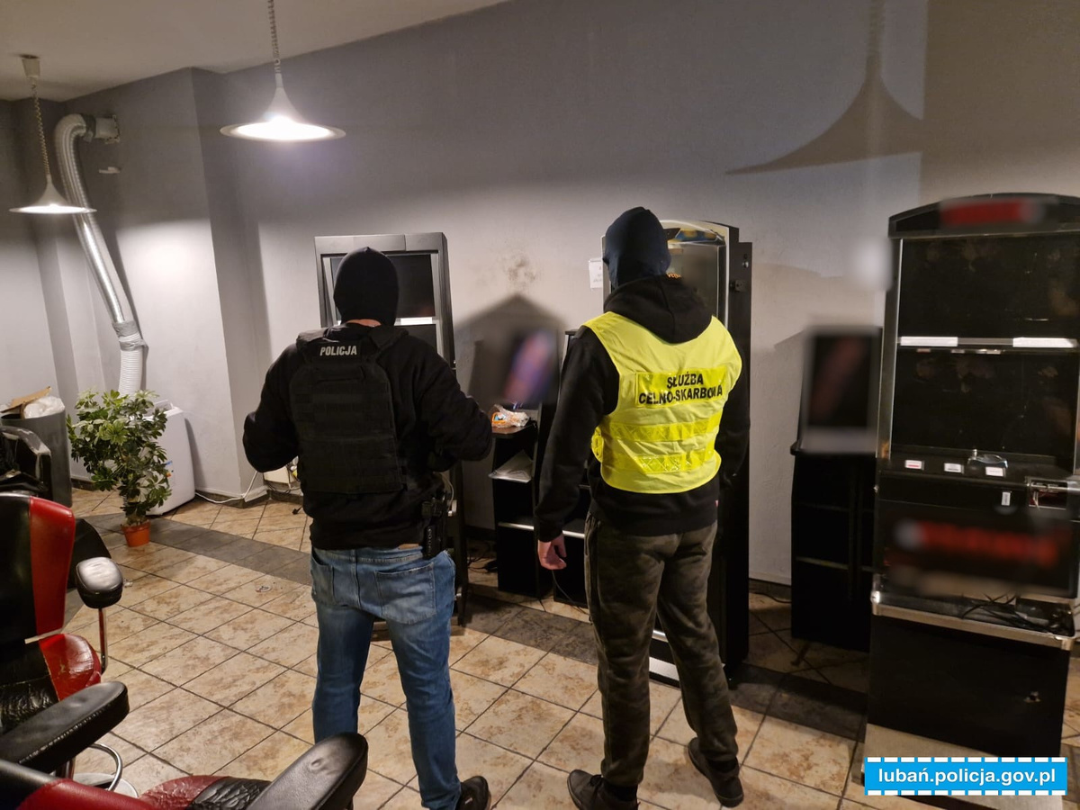 Tego samego dnia na terenie powiatu lubańskiego, policjanci Wydziału Kryminalnego tamtejszej komendy, wspólnie z funkcjonariuszami legnickiego Urzędu Celno-Skarbowego, zabezpieczyli 3 automaty do gier hazardowych, na których urządzane były gry hazardowe wbrew przepisom ustawy. Ujawnione maszyny zostały zabezpieczone i przekazane funkcjonariuszom służby celnej, którzy będą w tej sprawie prowadzili postępowanie. Wartość maszyn funkcjonariusze wycenili na 36 tysięcy złotych. Podczas tych działań kryminalni zatrzymali 38-latka, u którego w portfelu ujawnili narkotyki. Przeprowadzone badanie narkotestem wykazało, że była to metamfetamina. Mężczyzna usłyszał zarzut posiadania środków odurzających mniejszej wagi za co grozi kara pozbawienia wolności do roku.