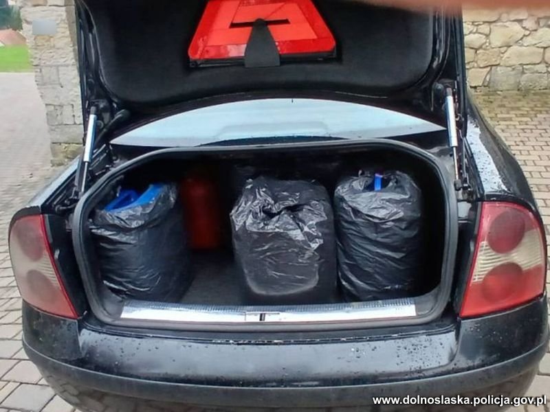 Przed przyjazdem patrolu sprawca uciekł.Policjanci natychmiast podjęli działania w celu zatrzymania 31-latka. Kiedy mundurowi sprawdzali jego miejsce zamieszkania natknęli się na ojca złodzieja, który właśnie próbował ukryć paliwo pochodzące z przestępstwa przechowywane przez syna w kanistrach w garażu. 52-letni paser został zatrzymany, a ponad 300 litrów paliwa zabezpieczone.