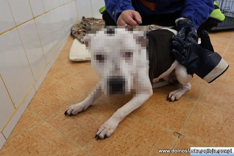 Na miejscu funkcjonariusze zastali 24-letniego mężczyznę oraz psa rasy Amstaff. Zwierzę znajdowało się w kojcu w jednym z pomieszczeń. Już po wejściu do mieszkania policjanci zwrócili uwagę na nietypowe zachowanie zwierzęcia, było wyraźnie przerażone, trzęsło się ze strachu i kuliło na widok właściciela. Na głowie i nosie widoczne były liczne rany, krew oraz obrzęk.