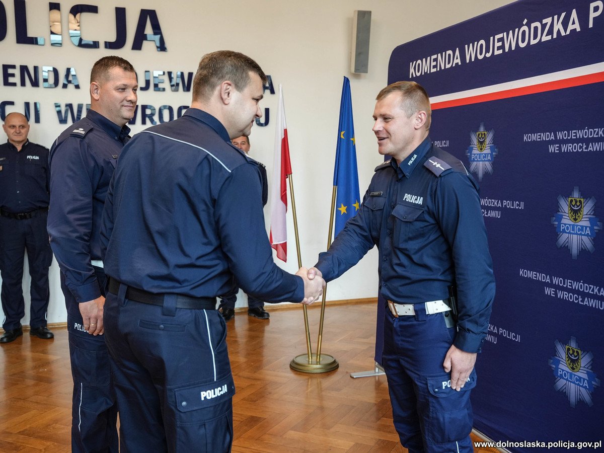 Wczoraj w Komendzie Wojewódzkiej Policji we Wrocławiu odbyło się wręczenie nagród i wyróżnień dla funkcjonariuszy biorących w ostatnim czasie udział w zawodach policyjnych poświęconych tematyce prewencyjnej. Na szczególne uznanie zasługuje asp. Mateusz Jankowski z KMP we Wrocławiu, który wspólnie ze swoim psem służbowym MIG zajęli drugie miejsce w klasyfikacji indywidualnej XXII Finału Mistrzostw Kynologii Policyjnej, organizowanego w Zakładzie Kynologii Policyjnej Centrum Szkolenia Policji w Legionowie.