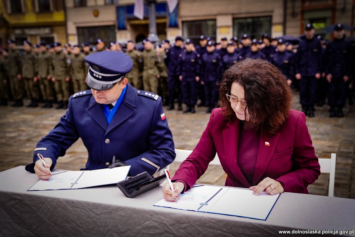 Pan Komendant zaznaczył również, że: współpraca dolnośląskiej Policji z Liceum Służb Mundurowych we Wrocławiu trwa już od kilku dobrych lat i obie strony mogą uznać, że jest ona na bardzo wysokim poziomie. Ale dziś podpisane zostaną Porozumienia dotyczące dalszej naszej współpracy (...) rozszerzając nasze działania w klasach policyjnych. Od dziś Komenda Wojewódzka Policji we Wrocławiu oraz Komenda Miejsca Policji we Wrocławiu staną się oficjalnym, równoprawnym partnerem mającym wpływ na kształtowanie i rozwój naszej młodzieży.