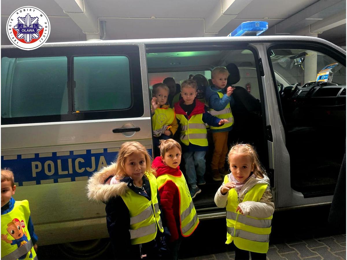 Przedszkolaki aktywnie uczestniczyły w rozmowie, chętnie odpowiadały na pytania i zadawały własne. Na zakończenie wizyty dzieci miały okazję zobaczyć budynek oławskiej Policji oraz policyjny radiowóz, a także zapoznały się z codzienną służbą policjantów i ich wyposażeniem.