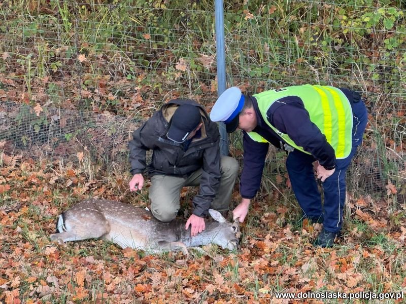 Na miejsce niezwłocznie skierowano dwa patrole, policjantów z Komisariatu Policji w Żmigrodzie oraz funkcjonariuszy Wydziału Ruchu Drogowego trzebnickiej komendy powiatowej. Mundurowi wstrzymali ruch w obu kierunkach, dbając o bezpieczeństwo podróżujących i rannego zwierzęcia.