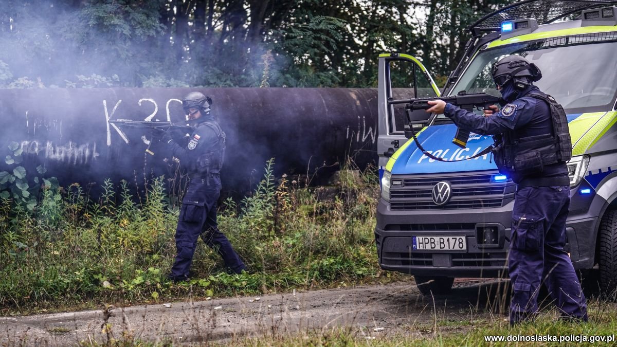 Poddziału Kontrterrorystycznego Policji we Wrocławiu, funkcjonariuszy Samodzielnego Pododdziału Prewencji Policji w Legnicy i policjantów z Grupy Realizacyjnej Komendy Powiatowej Policji w Lubinie.