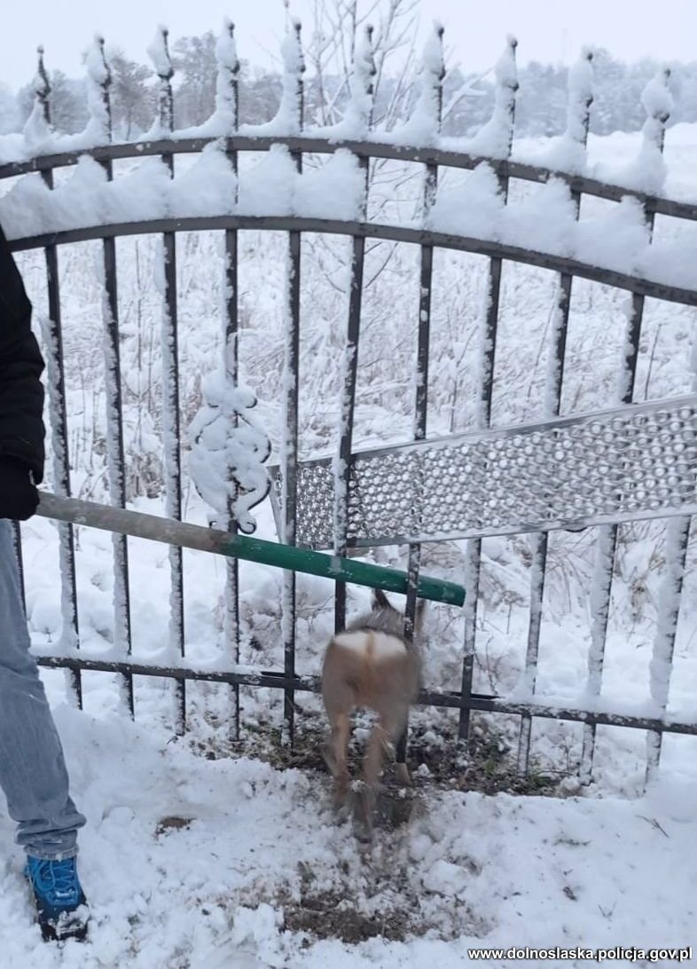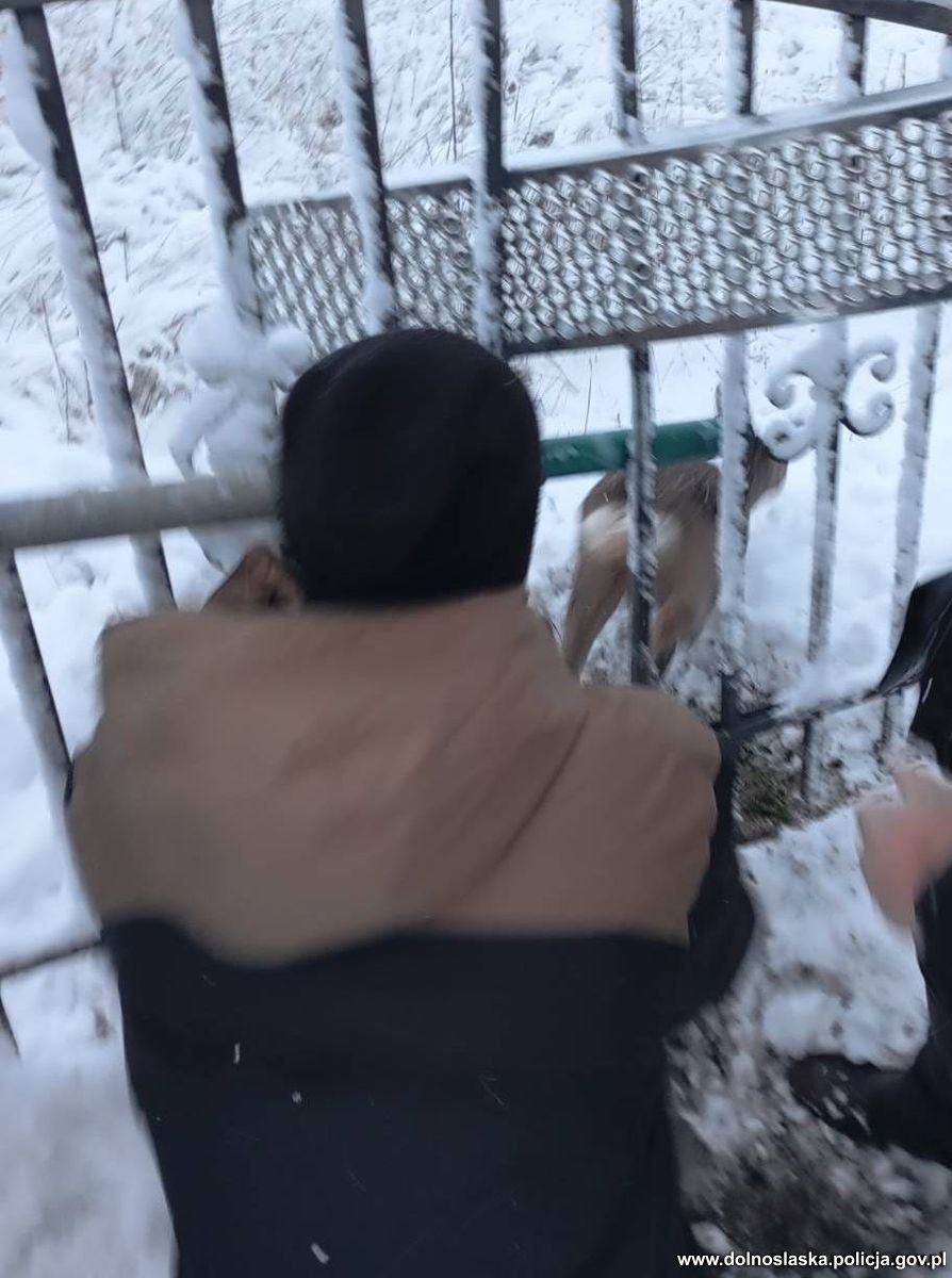 Policjanci z powiatu bolesławieckiego uwolnili sarnę uwięzioną w ogrodzeniu