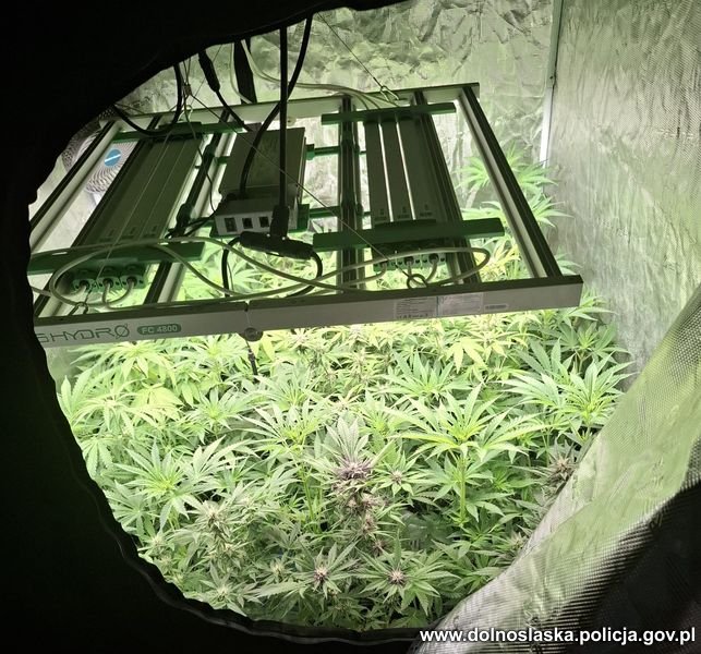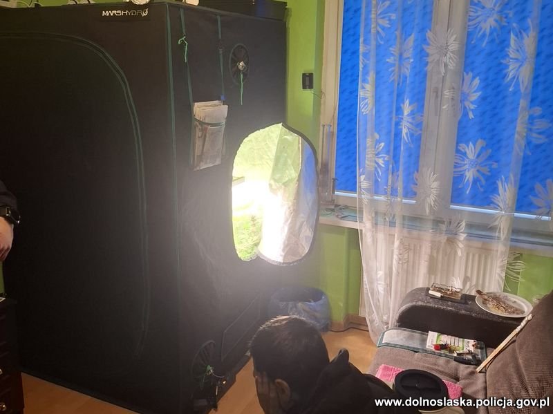 Kryminalni, prowadząc intensywne działania operacyjne, ustalili, że mieszkaniec Dzierżoniowa może posiadać niedozwolone substancje. Podczas realizacji policjanci ujawnili susz roślinny w postaci marihuany o znacznej wadze oraz trzydzieści trzy rośliny konopi w różnym stadium wzrostu. Rośliny były uprawiane w specjalnym namiocie wyposażonym w specjalistyczny sprzęt zapewniający odpowiednie warunki do wzrostu – m.in. oświetlenie, wentylację oraz systemy wspierające kontrolę temperatury i wilgotności.