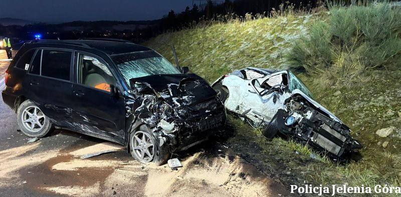 Do kolejnego zdarzenia doszło dzień później 14 grudnia br. w Jeleniej Górze. Z przeprowadzonych ustaleń na miejscu zdarzenia wynika, że kierująca samochodem marki Citroen w wyniku niedostosowania prędkości do panujących na drodze warunków wpadła w poślizg, zjechała na przeciwległy pas ruchu i uderzyła w jadący z przeciwnego kierunku pojazd marki Toyota. Niestety w wyniku zdarzenia 46 – letnia kierująca poniosła śmierć. Natomiast pozostali uczestnicy zdarzenia doznali powierzchownych obrażeń, korzystali z doraźnej pomocy medycznej.