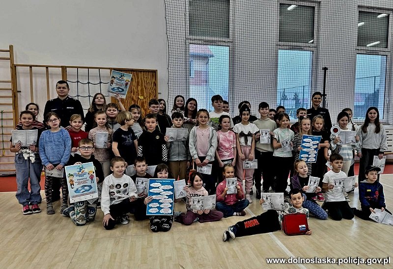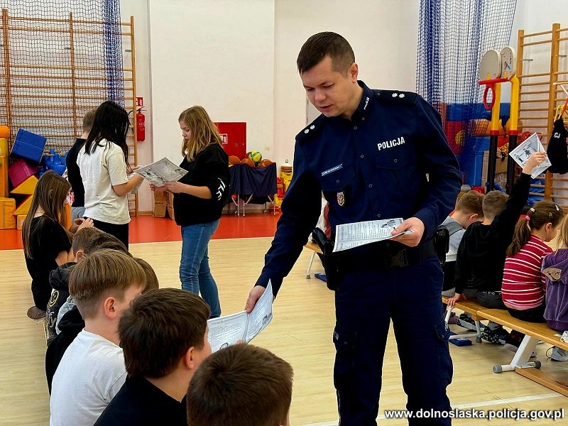 Dbając o bezpieczeństwo uczniów w czasie zbliżających się ferii zimowych dolnośląscy policjanci przeprowadzą szereg spotkań profilaktyczno-edukacyjnych. Podczas prelekcji policjanci przypominają o zagrożeniach mogących pojawić się w trakcie ferii. Szczególnie skupiają się na omówieniu zasad bezpieczeństwa podczas uprawiania sportów zimowych oraz gier i zabaw na świeżym powietrzu. Stale przypominają zasady postępowania wobec nieznajomej osoby: „Nie rozmawiaj...", „Nie ufaj...", „Nie wpuszczaj do domu...”, ale również uświadomili dzieciom do kogo mogą zwrócić się o pomoc w przypadku zgubienia się w obcym miejscu. Ważnym elementem spotkań są rozmowy o przestrzeganiu zasad poruszania się po drogach, szczególnie po zmroku, kiedy niezbędne stają się elementy odblaskowe.