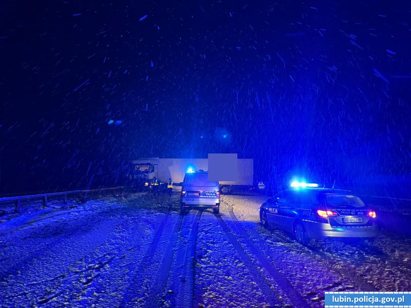 Do zdarzenia doszło 18 lutego, przed godziną 4:00. Na miejscu funkcjonariusze ruchu drogowego ustalili, że kierujący, 55-letni mieszkaniec województwa Zachodnio-pomorskiego, w wyniku trudnych warunków pogodowych i śliskiej nawierzchni, jadąc drogą ekspresową S3, na trasie Lubin- Polkowice, stracił panowanie nad samochodem ciężarowym wraz z naczepą, po czym uderzył w bariery energochłonne i stanął w poprzek drogi. Utrudnienia na drodze trwały kilka godzin.