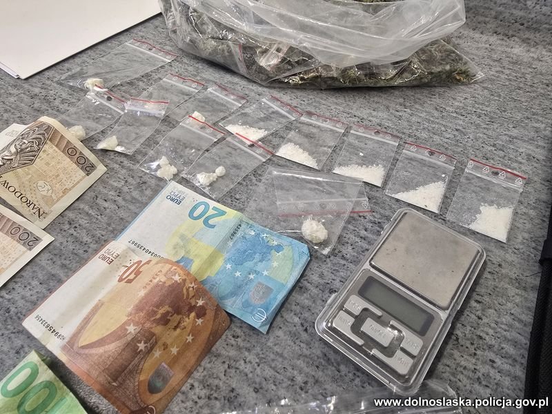 Do zatrzymania doszło na terenie sąsiedniego powiatu. Podczas przeszukania jego miejsca zamieszkania policjanci ujawnili nie tylko podrobione banknoty euro, lecz także znaczną ilość środków odurzających. Śledczy zabezpieczyli 625 porcji marihuany oraz 145 porcji klefedronu, które były przygotowane do dalszej dystrybucji.
