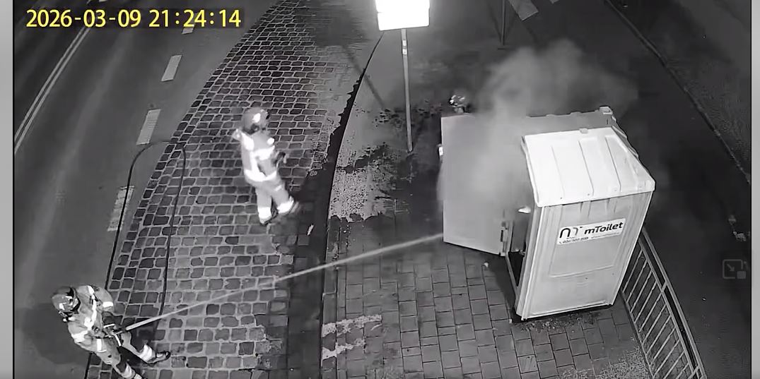 Do zdarzeń doszło w marcu 2026 roku przy jednej z ulic w centrum miasta, w rejonie pętli autobusowej. Jak ustalili policjanci, sprawcy działając wspólnie i w porozumieniu, dokonali uszkodzenia przenośnej kabiny WC poprzez jej podpalenie od wewnątrz.