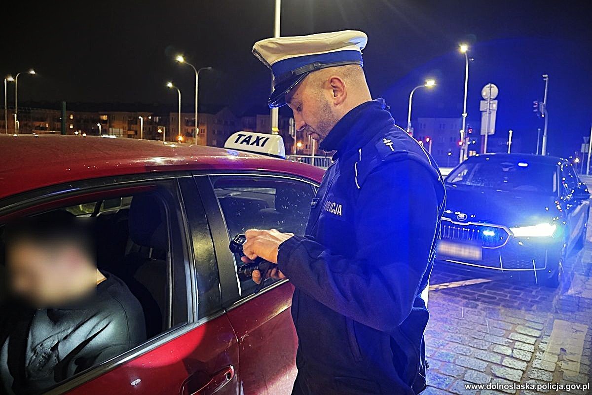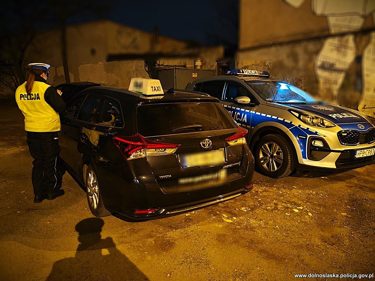 W piątkową noc (20.03.2026) we Wrocławia, Legnicy, Jeleniej Górze i Wałbrzychu funkcjonariusze prowadzili intensywne kontrole kierujących trudniących się przewozem osób na tzw. aplikację. Mundurowi sprawdzali między innymi stan techniczny pojazdów, trzeźwość i uprawnienia kierujących, legalność okazywanych dokumentów i pobytu obcokrajowców na terenie Polski. Funkcjonariusze drobiazgowo kontrolowali także posiadanie stosowanych licencji na przewóz osób. Oczywiście każdy z kierowców weryfikowany był w policyjnych bazach danych, co pozwala na identyfikację osób poszukiwanych, nielegalnie przebywających na terenie naszego kraju, czy takich, którzy wsiedli za kierownicę auta, pomimo ewidentnych przeciwwskazań, takich jak posiadanie aktywnego zakazu prowadzenia pojazdu czy braku uprawnień.