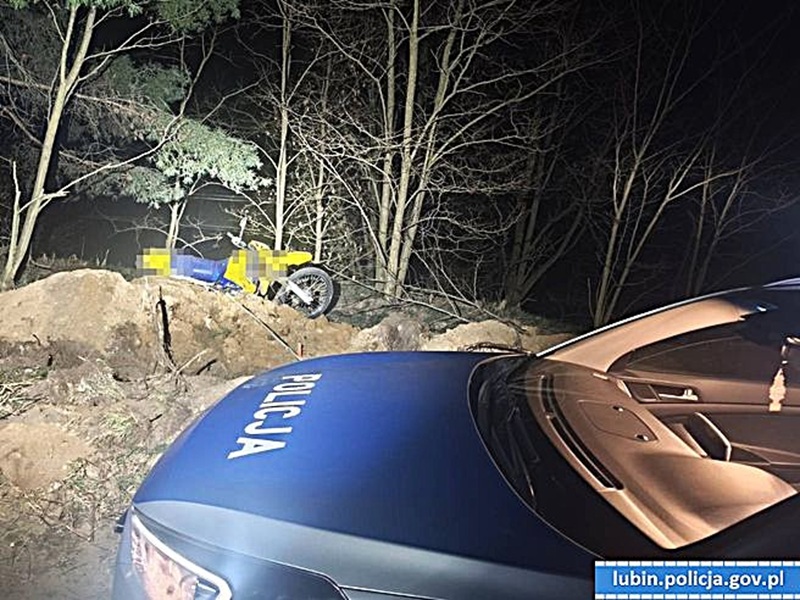 Jak się okazało, kierowcą crossa był 17-letni mieszkaniec gminy Rudna. Nastolatek nie odniósł żadnych obrażeń i nie potrzebował pomocy medycznej. Oświadczył policjantom, że uciekał, bo nie miał uprawnień do kierowania motocyklem.