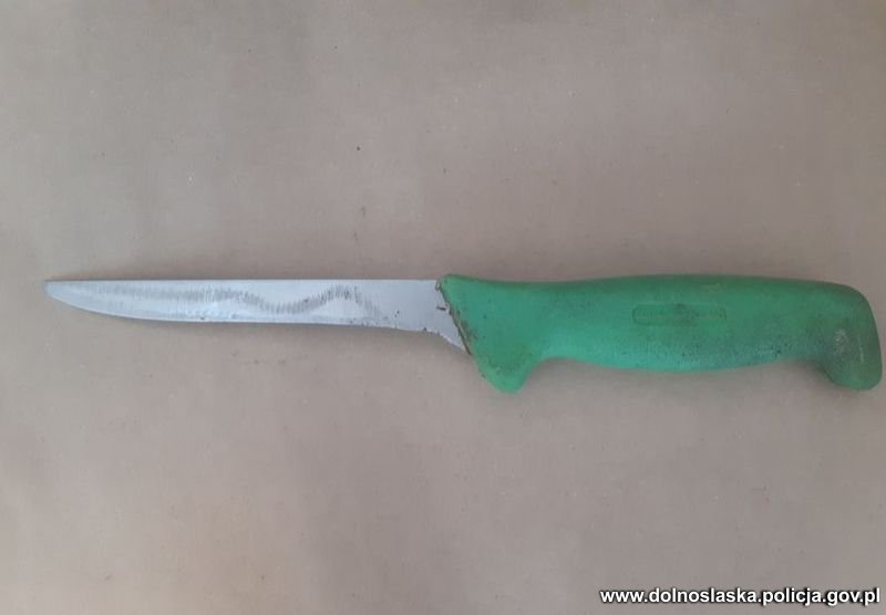 Kilka dni temu dyżurny Komendy Powiatowej Policji w Dzierżoniowie otrzymał zgłoszenie o nieporozumieniach rodzinnych. Na miejsce został zadysponowany patrol. Wysłani pod wskazany adres policjanci zastali tam zgłaszającą, która poinformowała, że najbliższy jej członek rodziny, będąc pod wpływem alkoholu wszczął awanturę i groził pozbawieniem życia. Gdy kobiecie udało się zadzwonić po policję, mężczyzna uciekł. Mundurowi podjęli decyzję o sprawdzeniu pobliskiego terenu, a osoba wskazana jako sprawca była im już znana z wcześniej podejmowanych czynności. Gdy policjanci wyszli z budynku i wsiedli do radiowozu zauważyli awanturnika. Gdy podjechali i wyszli z pojazdu celem legitymowania, osoba trzymając w dłoni nóż, używając słów wulgarnych zagroziła policjantom pozbawieniem życia i ruszyła w ich kierunku. Mężczyzna zaatakował policjantów usiłując zadać cios zarówno poprzez pchnięcie jak i cięcie niebezpiecznym narzędziem. Tylko dzięki refleksowi żaden z nich nie został ugodzony. Policjanci przy użyciu środków przymusu bezpośredniego obezwładnili napastnika i zatrzymali.