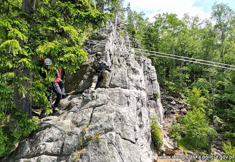 Kiedy nie zatrzymują najgroźniejszych przestępców bądź nie neutralizują najpoważniejszych zagrożeń, nieustannie doskonalą swoje umiejętności podczas licznych szkoleń, aby byli gotowi skutecznie i profesjonalnie zareagować, gdy będą potrzebni. Mowa o funkcjonariuszach elitarnej policyjnej jednostki, jaką jest Samodzielny Pododdział Kontrterrorystyczny Policji we Wrocławiu. Tym razem, dzięki doskonałej współpracy z Karkonoską Grupą GOPR i Strażą Karkonoskiego Parku Narodowego, policyjni specjalsi odbyli w Karpaczu specjalistyczne szkolenie wysokościowe, podczas którego mogli doskonalić swoją sprawność m.in. w zakresie zjazdów w terenie skalnym na dużych odległościach oraz przemieszczania się w poziomie przy użyciu kolejki tyrolskiej.