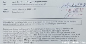 Do Komendy Miejskiej Policji w Jeleniej Górze wpłynęły pisemne podziękowania od babci 14-letniej dziewczynki, która została zgłoszona jako osoba zaginiona. Autorka listu wyraziła głęboką wdzięczność funkcjonariuszom Policji za zaangażowanie, szybkie i skuteczne działania oraz wsparcie okazane rodzinie w jednym z najtrudniejszych momentów.