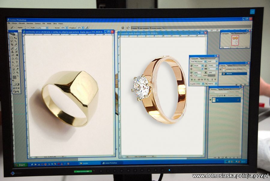 Ekran monitora przedstawiający wyświetlone przedmioty biżuterii w programie narzędziowym